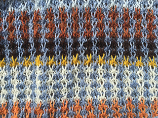 Vest i vævestrik strikket oppefra i tynd uldgarn 275m/50g. Opskriften er i 5 størrelser med brystmål fra 92-132cm der er brugt Max 3 nøgler Supersoft i bundfarven og 7 kontrast farver med højst 25g i hver farve.