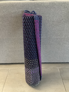 New Year, new you, new yoga mat bag. This bag is worked in the round from the bottom up and features an openwork body pattern, drawstring closure, and integrated strap.