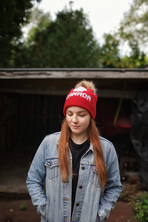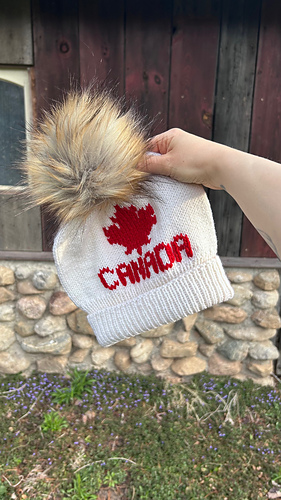Knit in worsted weight yarn, this beanie is designed with a snug ribbed brim and a smooth stockinette body. The motif is added afterwards using the duplicate stitch technique. The crown is topped off with a fluffy faux fur pom-pom for that extra touch of northern charm. Whether you’re hitting the slopes, enjoying a walk through the snow, or cheering on your favorite Canadian team, this beanie is sure to keep you warm and stylish.