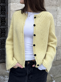 MAREA Cardigan ist eine klassisch geschnittene Jacke in einem grafischen Strukturmuster aus rechten und gekreuzten Maschen, das ohne Zopfnadel gearbeitet wird. Der Cardigan wird top down gestrickt. Die Konstruktion liegt zwischen klassischer Raglanform und Rundpasse. Verkürzte Reihen formen Halsausschnitt und Rücken und sorgen für eine optimale Passform. Die schmalen Blenden mit unauffälligen, runden Knopflöchern werden direkt mitgestrickt. Alternativ kann die Jacke auch ohne Knöpfe gearbeitet werden. Die Bündchen sind als Variation des Strukturmusters gestaltet, wodurch sich das Muster harmonisch fortsetzt. Die Ärmel können wahlweise gerade oder leicht abgeschrägt gearbeitet werden. Länge und Ärmellänge lassen sich individuell anpassen.