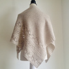 Maridal is a triangular shawl knitted on the bias with a lace panel down one side. The lace panel features a leaf motif and small cables.