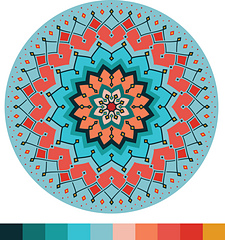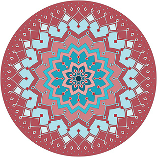 Yarn needed: if you are using yarn similar to Twister or Sultan Deluxe, you will need 1000 meters for the background color and about 1000 meters for the pattern color and 2.5 mm hook. The size of my sample is 34”, the size of your mandala will depend on your yarn, hook and tension. I recommend having the mandala finished before ordering the hoop.