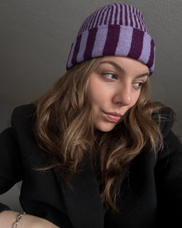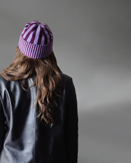 The Marina Hat is worked from side-to-side, using short rows to shape the crowns. First, stitches are cast on for the width of the hat. Then, a stockinette Intarsia pattern is worked throughout. Next, the hat is grafted closed. Finally, the hat is folded into itself to create the double thickness.