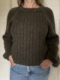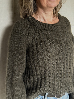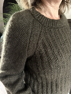 MARIZA is a soft and simple sweater, worked in Faux Fisherman’s Rib on the front and back, with stockinette stitch sleeves.
