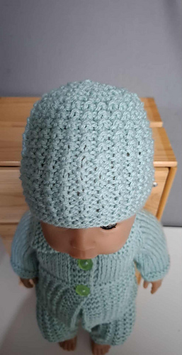 Pattern contains instructions for Jacket with collar, Trousers and Beanie