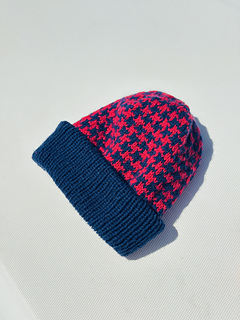 Marlin er en varm og behagelig hue med klassisk hanefjedsmønster (hound’s tooth) og tydelige farvekontraster. Den brede ribkant gør, at huen sidder godt og beskytter mod kulden, mens det tætte mønster giver et tidsløst udtryk. En hue der fungerer lige godt på en kølig dag ved havet som på en gåtur i byen. Marlin Beanie strikkes rundt på rundpind nedefra og op med 1x1 rib og mønsterstrik. Huen har dobbelt ombuk i rib. Marlin Beanie er til både mænd og kvinder.
