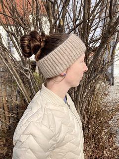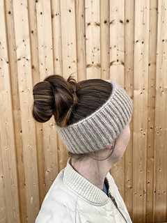 The beige Marlin Headband is knitted with Cashmere Delizia by Pascuali in color 56 Taupe.