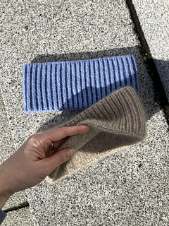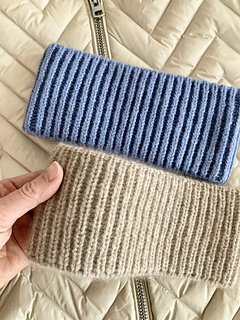 The MARLIN headband is worked in two colors, with a beautifully textured Fisherman’s Rib on the outside and smooth stockinette stitch on the inside. The fabric is luxuriously voluminous and wonderfully stretchy, making it both comfortable and warm - perfect for chilly days.
