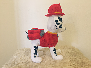 This crochet pattern will allow you to create your own Marshall from Paw Patrol. The best about this pattern is the size of the finished product, wich makes it super huggable for kids, and that Marshall does not have small or plastic parts (such as safety eyes), what makes it safe for the little ones :D
