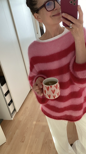 Difficulty level 3 of 5 (top-down, short rows, increases at the shoulder yoke)