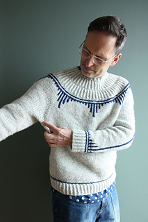 Mårvej Sweater has a regular, relaxed fit with about 8-15 cm / 3.1-6″ of positive ease The length of body and sleeves can be adjusted individually (keep in mind that the amount of yarn will vary).