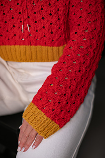Якщо Ви в’яжете з іншої пряжі з дотриманням щільності, основного кольору знадобиться близько 960(1040,1120,1200)м для джемперу з коротким рукавом та 1200(1300,1440,1600) м для джемперу з довгим рукавом.
