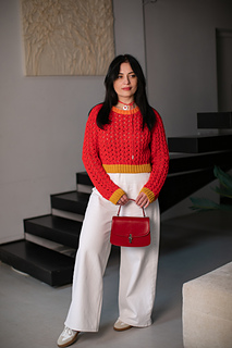 Additional: 1 skein in colour № 1 (neck band), 1 skein in colour № 2 (hem and cuffs).