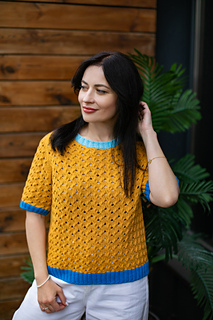 • джемпер з коротким рукавом – 5(6,6,7) мотків основного кольору;