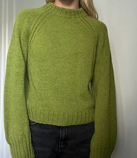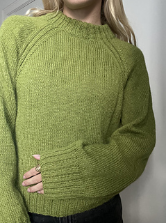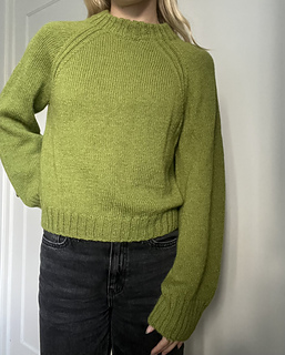 Matcha Sweater er en lækker raglan sweater med ribkanter i dobbelt rib. Sweateren strikkes oppefra og ned, hvor vendepinde bruges til at forme halsudskæringen, og raglanudtagninger bruges til at danne bærestykket.