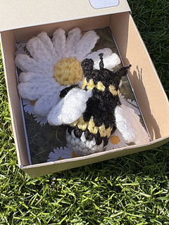 If you choose to make the bee without the box, this design also works well in different weight yarns for uses such as a brooch, hair clip or keychain.
