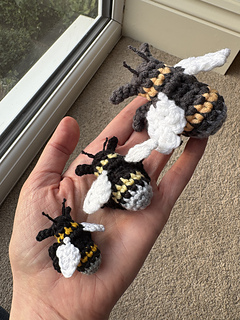 Yarn of your choice. I used dk weight yarn (equivalent to light worsted, weight 3) and my finished bee measures approximately 5cm long. Using a thicker yarn than this may result in your pet bee not fitting inside the accompanying box.