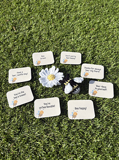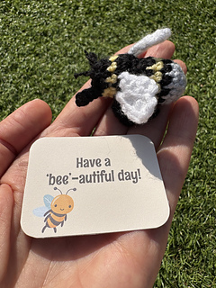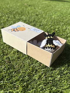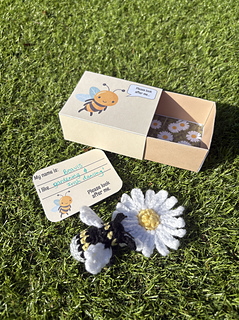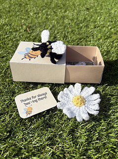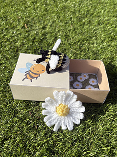 This pattern is for a small no-sew bee and a daisy for it to collect nectar from! The pattern also includes printable templates to enable you to make not only the matchbox and name card, but also a range of bee themed gift tags, making it an ideal gift, stocking filler or craft fair item.