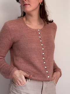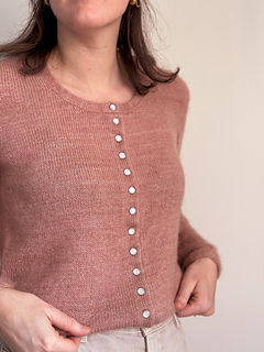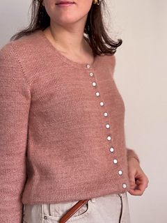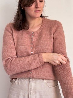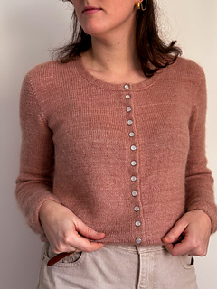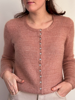 Mauricette stands out with its invisible button band, giving it a clean, refined, and enduring look. The seamless set-in sleeves create a sharp, elegant silhouette, while the double knitting finishes provide structure and comfort.
