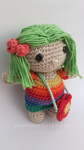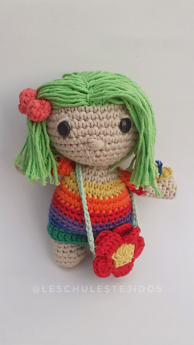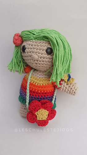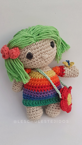 Mave es la muñeca de la Primavera, por eso brilla de color, su bolso es una flor y la acompaña su amiga Panambí! (Panambí es mariposa en guaraní)