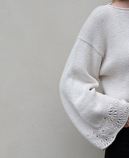 May Sweater is an oversized, slightly cropped sweater with a clean and timeless look. Knitted in stockinette stitch from the top down, it features short-row shoulder shaping, seamlessly picked-up sleeves, and a neat i-cord neckline