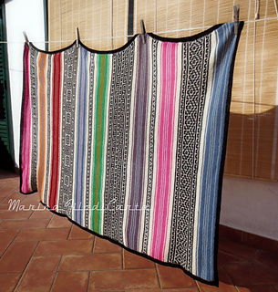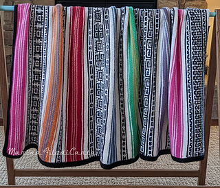 Maya Blanket è un copriletto per letto singolo realizzato a maglia legaccio e punto mosaico, si alternano strisce colorate ad altre che ricordano i tessuti messicani.