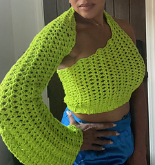 Welcome to the Maya Crop Top! This design is perfect for the experienced beginner looking to challenge their skills just a bit more. Crafted to be approachable yet satisfying, this pattern is mostly worked in the round and in one piece, making it a seamless project from start to finish.