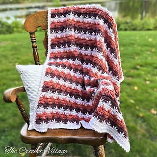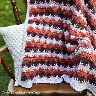 Mayflower Crochet Throw Blanket Pattern – This warm, soft, and reversible blanket is the perfect fall or holiday accent. It features a beautiful stitch pattern resembling autumn leaves, finished with an elegant edging. A stunning addition to your fall or Thanksgiving decor!