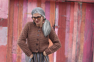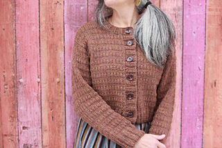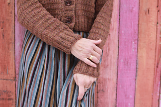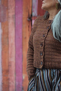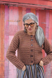 Sizes based on circumference around bust, buttoned. Sizes based on final, blocked fabric. For fit shown, I suggest about 4-6”/10-15.25cm of positive ease, based on actual bust.