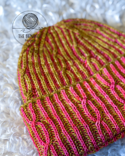 McKinnon Beanie is a fun and engaging pattern designed to challenge confident knitters with 2 colour brioche and brioche cables!