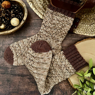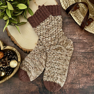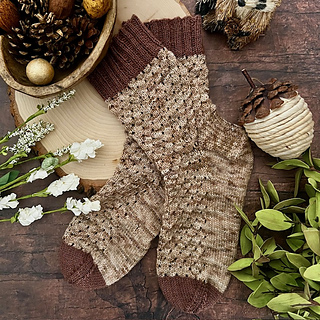 This design features a delicate textured stitch pattern that drifts down the leg and foot like scattered seeds across a meadow floor. The pattern is engaging enough to keep your hands interested while remaining wonderfully rhythmic, making it the ideal project for slow days, travel knitting, or quiet moments with a cup of something warm. Whether knit in warm harvest tones, soft neutrals, or woodland shades, the Meadow Scatter Socks bring a sense of quiet landscape to your needles.