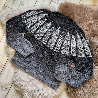 Finished objects made using this pattern may not be sold commercially. Individual people are free to sell their finished sweaters in any way they want, but no commercial business is allowed to manufacture and sell sweaters made using this pattern, unless said commercial business has my explicit permission to do so.