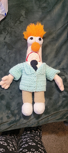 This is a meep man. He is about a foot tall and has some beautiful hair. He is a beginner pattern super easy to.follpw along if you have and questions or concerns just ask