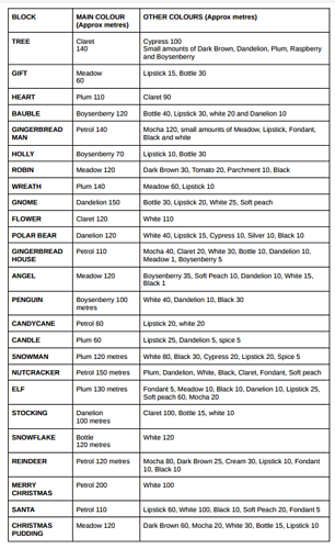If you haven’t got time this year why not start the pattern now and make two blocks a month and by next Christmas you will have finished!