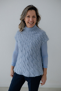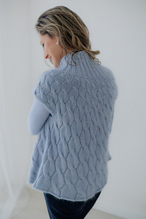 It is knitted seamlessly top down, in the round, entirely in cable stitches that waterfall, increasing in length and width from the yoke into the body.