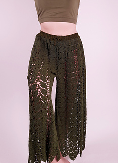 The Melia Pant pattern can be used to make either loose, flowy shorts or an ultra wide leg pant of any length with simple adjustments explained in full within the pattern. Using your own waist measurement, this pattern works up to any size! Featuring lots of gorgeous leafy lace gathered into a simple ribbed waistband, these shorts/pant have gorgeous drape and movement!