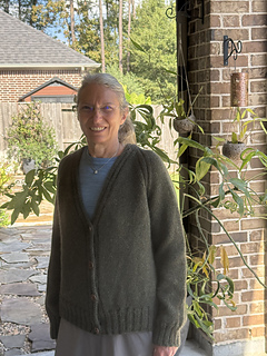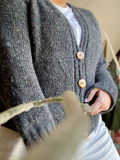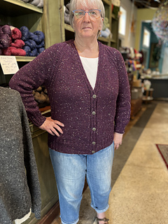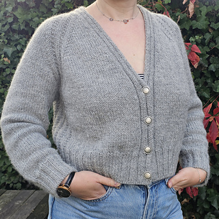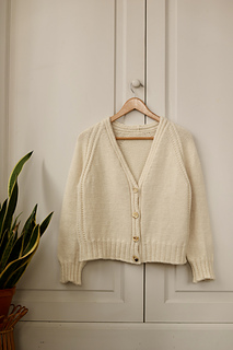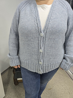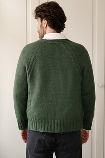 Raglan increases grow the cardigan, and the button bands are worked at the same time.