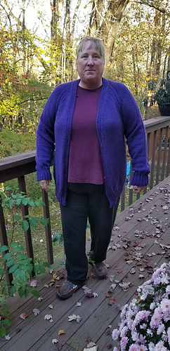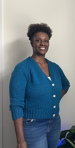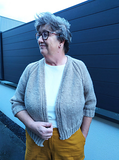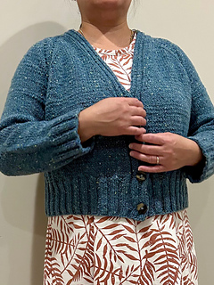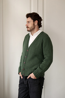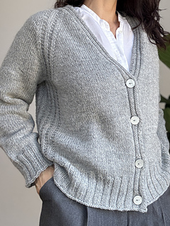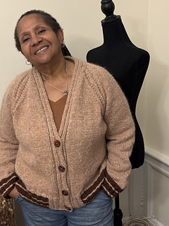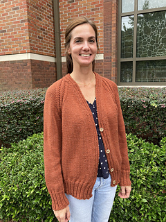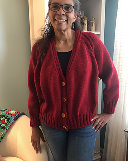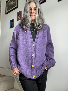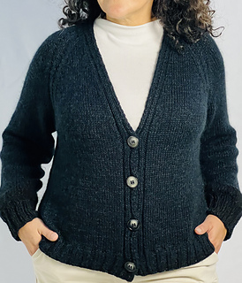 Raglan increases grow the cardigan, and the button bands are worked at the same time.