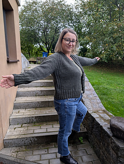 The sleeves are then worked in the round from the top down with basic decreases.