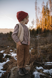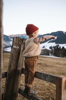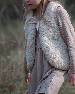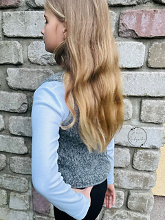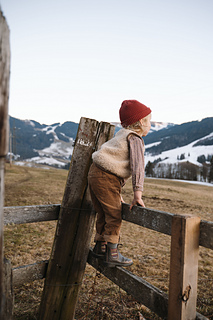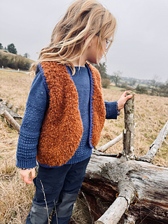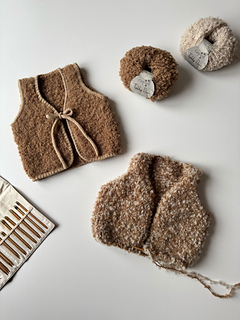 The Mellow Vest Kids is knitted top-down. You begin with the back, followed by the shoulders and the front sections, and finally the main body. The length of the vest can be individually adjusted to your preference.