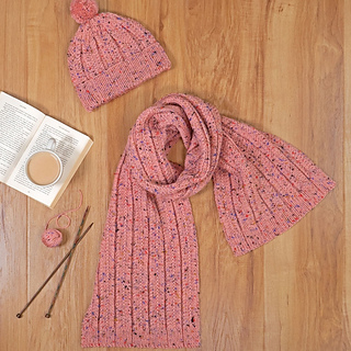 The beanie is part of the Melody Beanie and Scarf Set and instructions for the scarf are included.