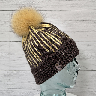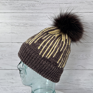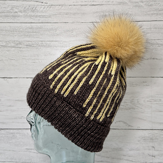 The Melting Ice Cap is a bold two-color design that plays with contrast and movement. Long vertical lines appear to drip and flow, creating the look of something slowly melting as it stretches downward through the fabric. Clean structure meets organic texture in this eye-catching knit. The colorwork is simple yet creative, making it an engaging project. Cozy to wear that’s full of interest. This hat is perfect for those who love visual texture, strong lines, and designs that feel a little unexpected. Perfect for knitters who enjoy texture, subtle drama, and a fresh take on two-color design, the Melting Ice Cap is a statement piece that still feels timeless. This beanie is one size and can fit most adults and teens. Chart included with written instructions.