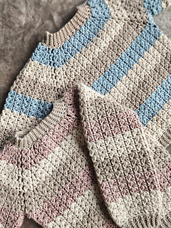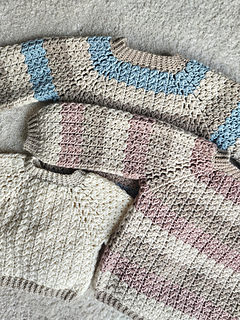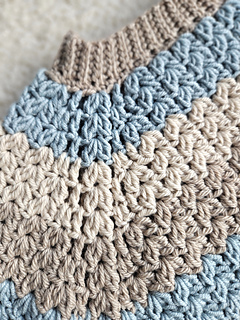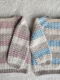 The pattern is a PDF download, and it has lots of pictures and detailed instructions to help guide you through the pattern. It is a no sew/low sew pattern, with options to either sew or slipstitch together the ribbing and a small gap under the arms, the rest of the sweater is worked in rounds for the entire pattern. Color changes are optional, and you can easily play around with color changes as you like - be creative!