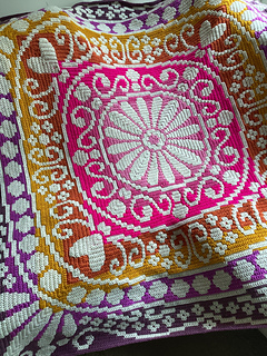 This blanket pattern is made to crochet in overlay mosaic crochet technique. It is worked from the center out!