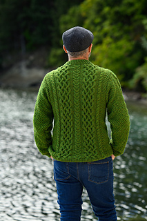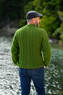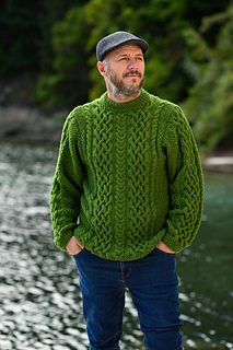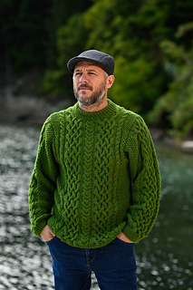 The Stormbraid Sweater is an Irish cable sweater pattern for men, inspired by rugged coastlines, Celtic knotwork, and traditional Aran knitting.