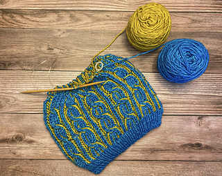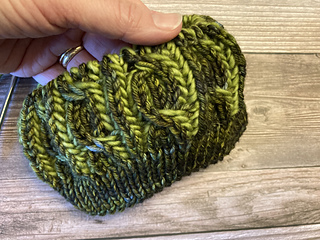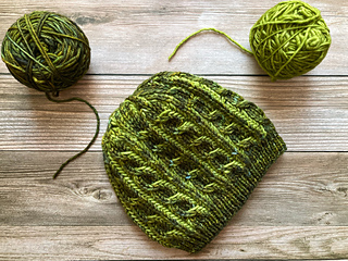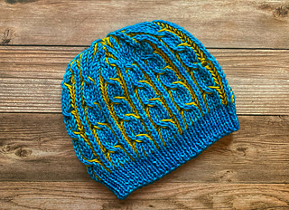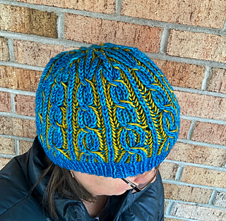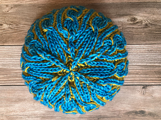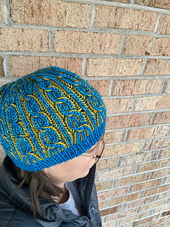 This brioche beanie is knit in the round with a worsted weight yarn. It begins with a 1x1 rib brim and transitions into a two color brioche cable pattern. It can be sized up/down in circumference by casting on a different multiple of 12 stitches.