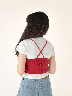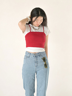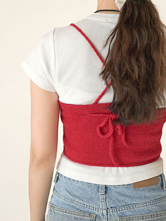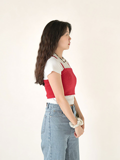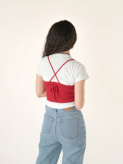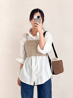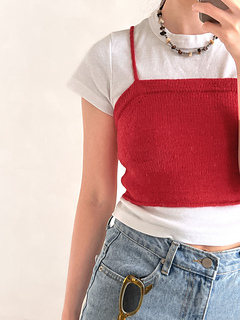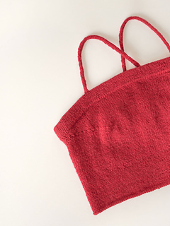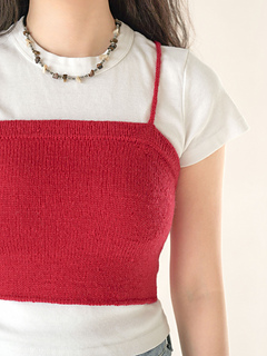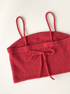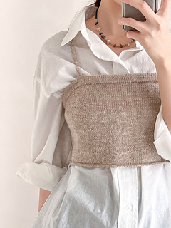 This bustier top is a high-quality, fitted design knitted with needles. The bust is shaped with short rows, creating a lower underarm and a higher center bust for a comfortable fit and a neat finish without tightness around the underarm. Worked top-down with a double-layered start, the length can be easily adjusted. The hem is finished without a double layer or ribbing, using a stockinette edge and a non-curling bind-off technique for a clean drape. A full video tutorial guides you from start to finish, and the straps can be styled in three different ways, making the piece highly versatile. If you are confident in knitting and purling or have experience knitting a hat, this project will be an enjoyable challenge.