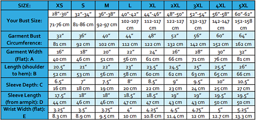 9 SIZES AVAILABLE: XS, S, M, L, XL, 2XL, 3XL, 4XL, 5XL