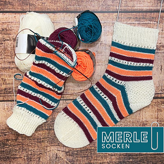 Die Merle-Socken sind eine vielseitige Strickanleitung, die deine Sockenwollreste perfekt in Szene setzt. Dank ihres klaren Aufbaus eignen sie sich ideal für einfarbige oder leicht melierte Garne und lassen sich individuell gestalten: breite oder schmale Blockstreifen, dezente Farbwechsel oder ein lebendiger, bunter Look – alles ist möglich.