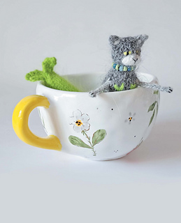 Fine yarn suitable for small projects (mink yarn or similar recommended; main color for the cat and contrasting colors for the tail)